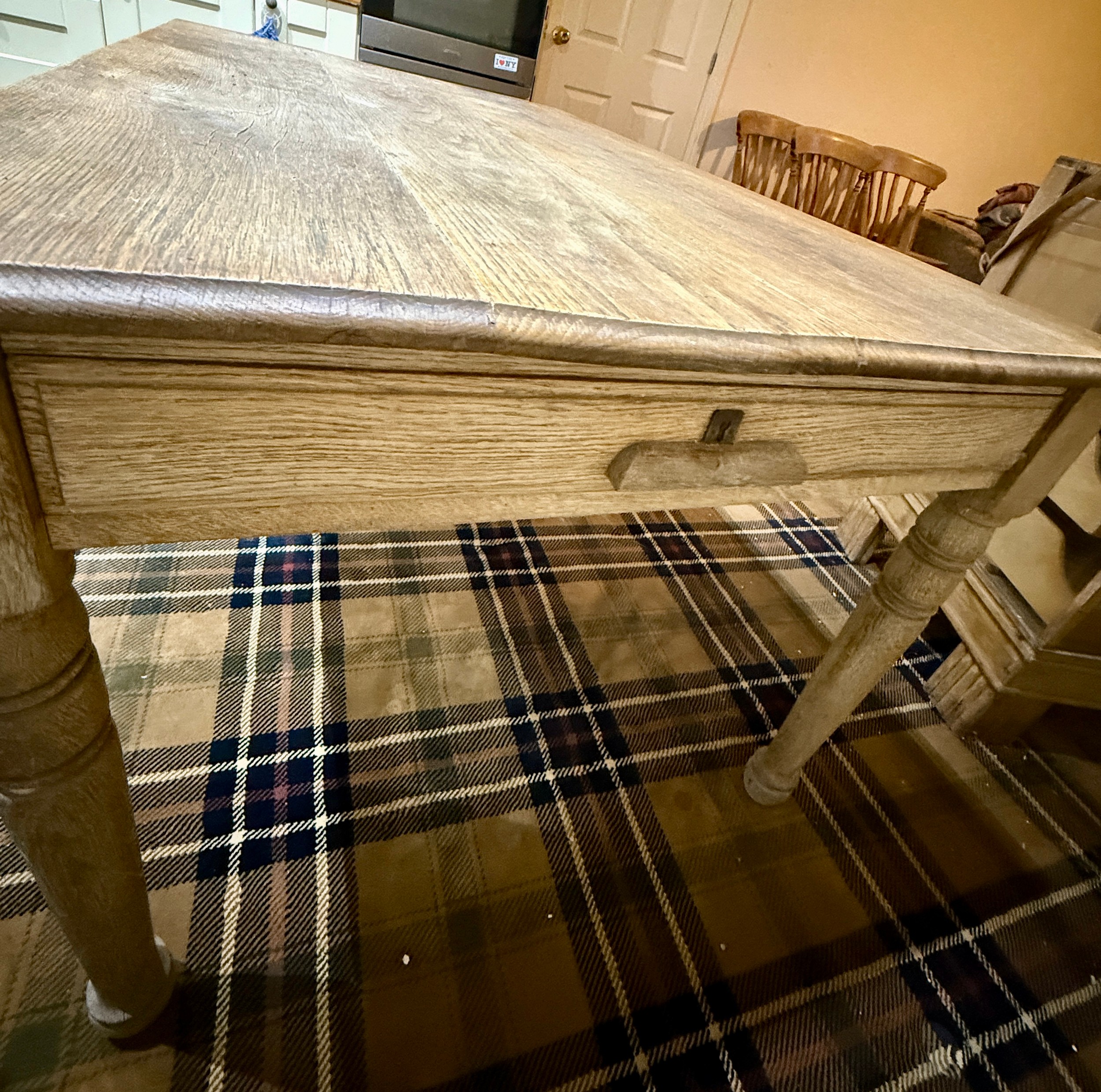 An oak dining table with drawer to each end 150 w x 90 x 75cm h.