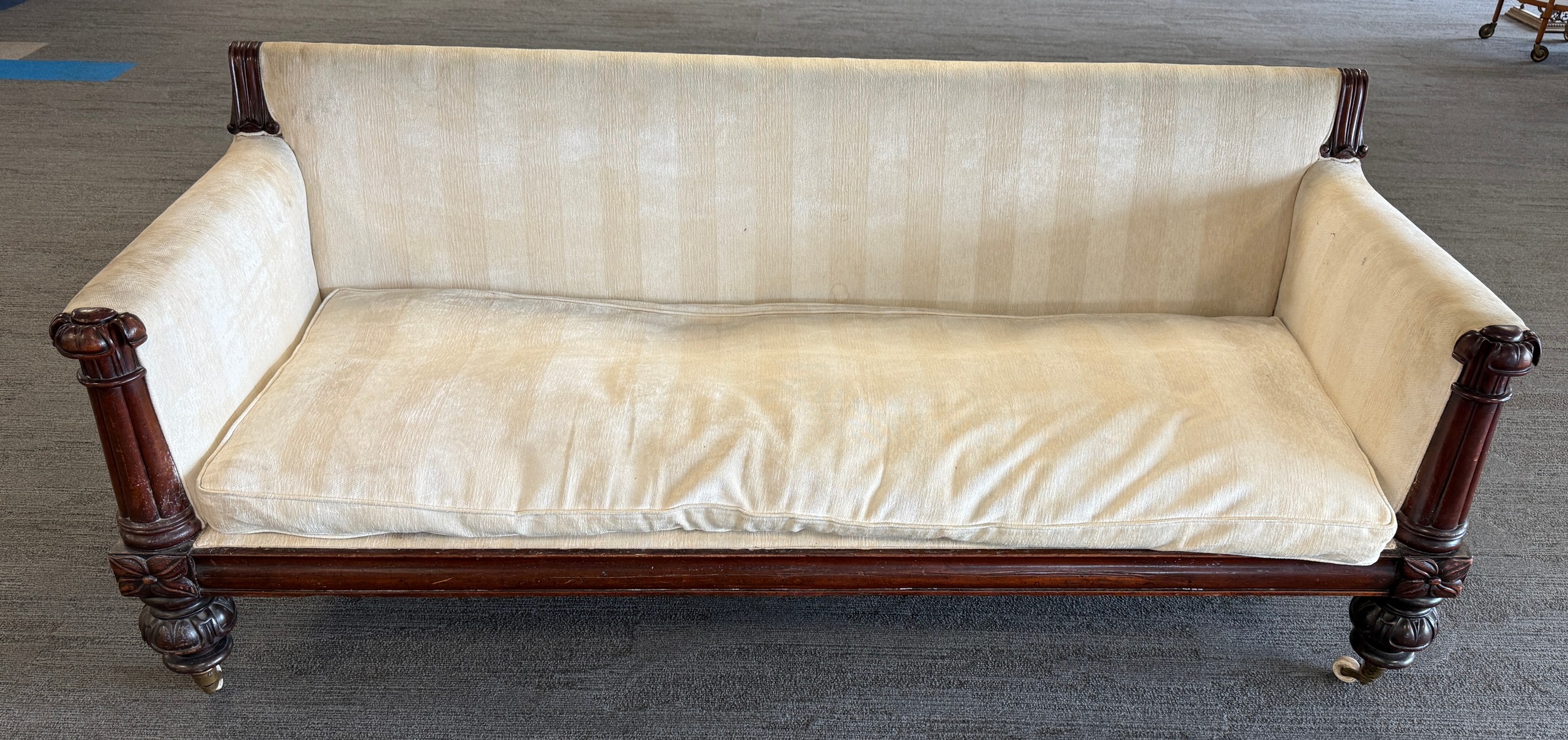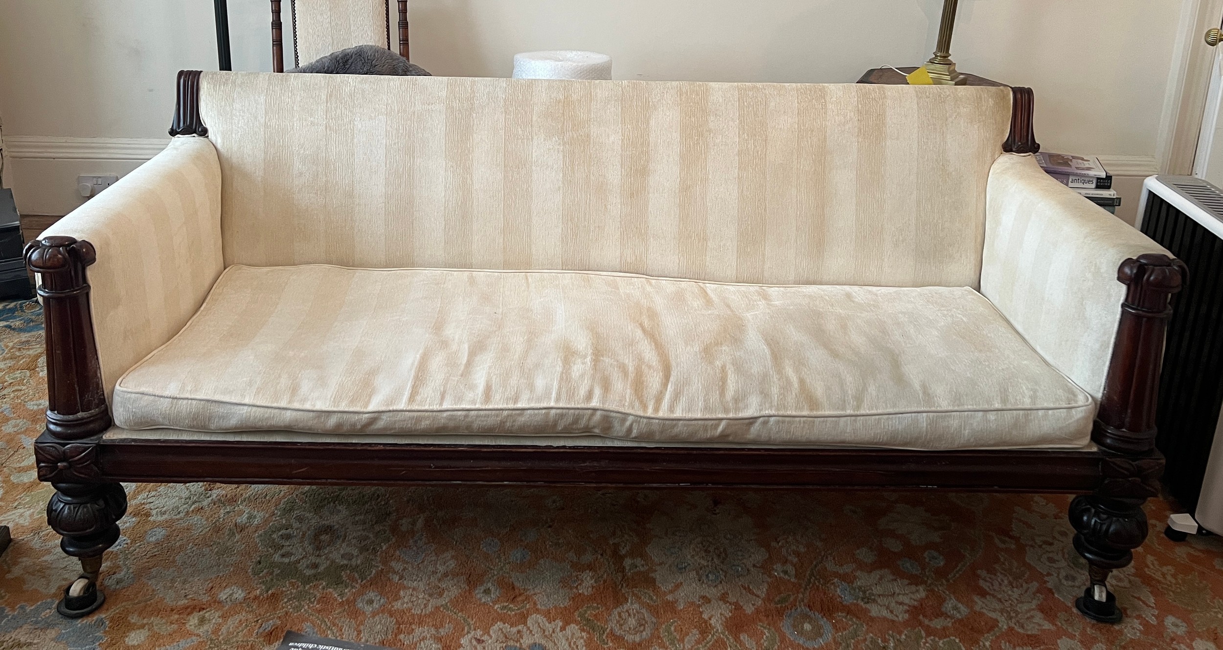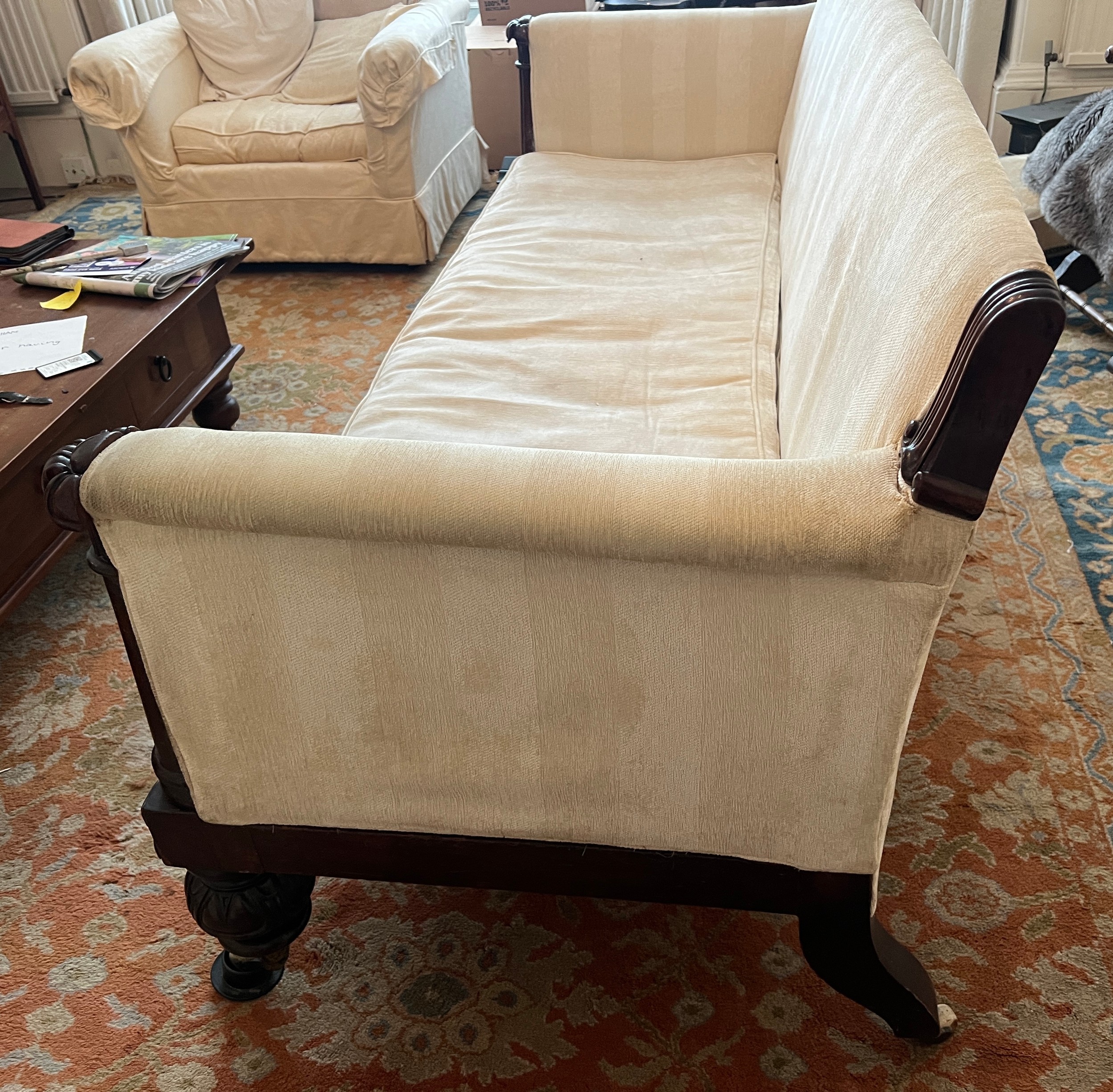 A Regency upholstered sofa. 206cm l x 79 d x 86 h.
