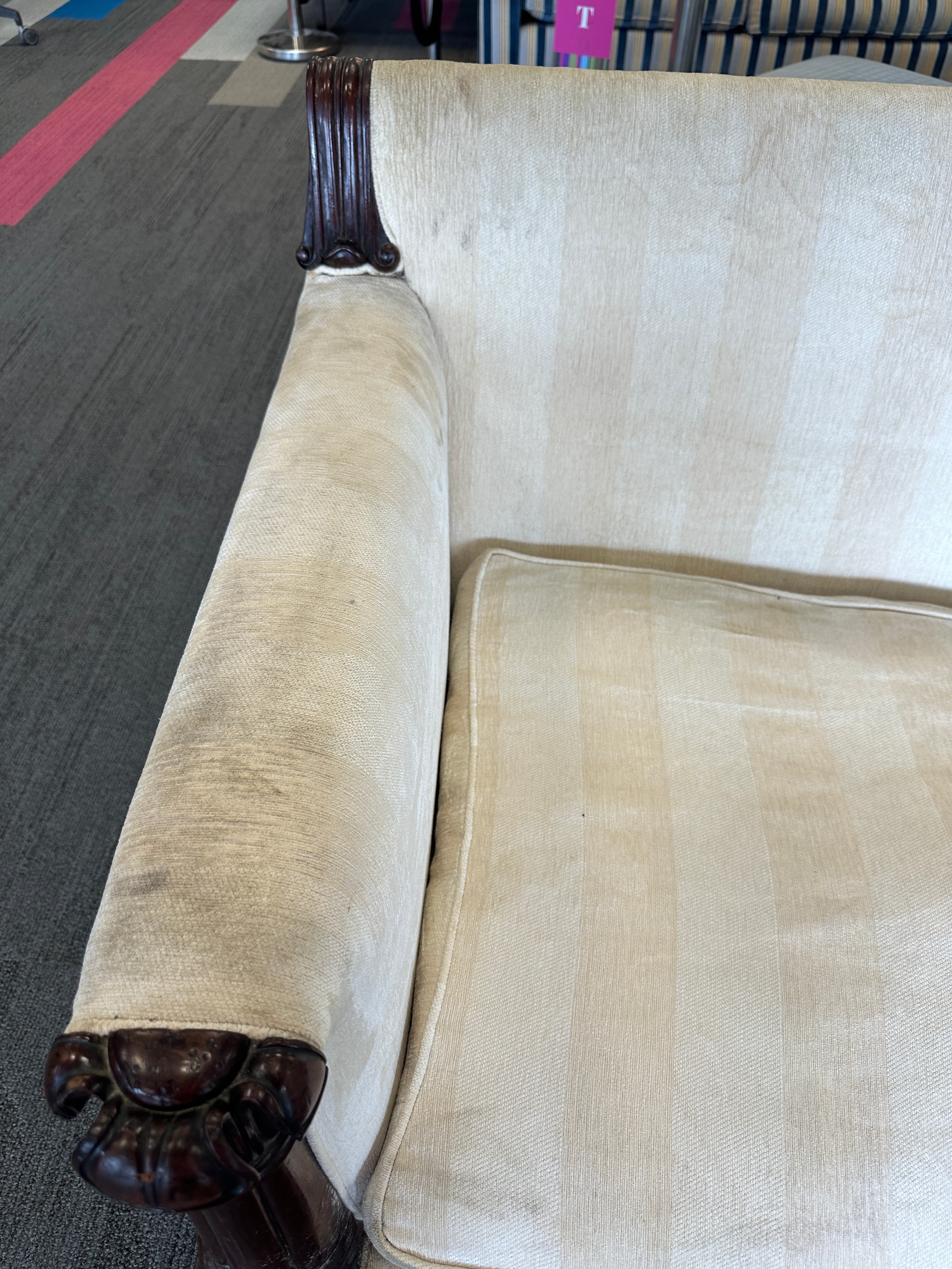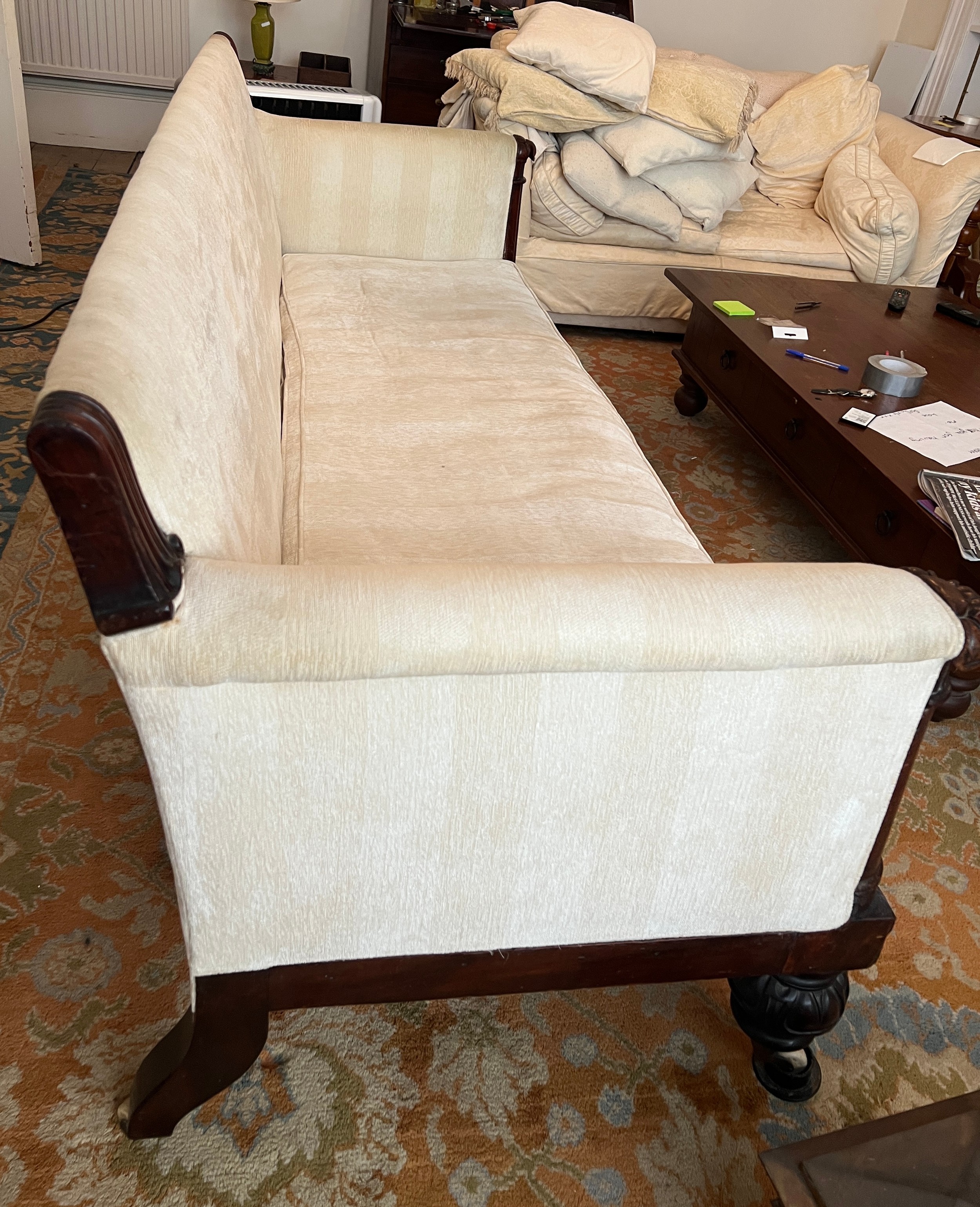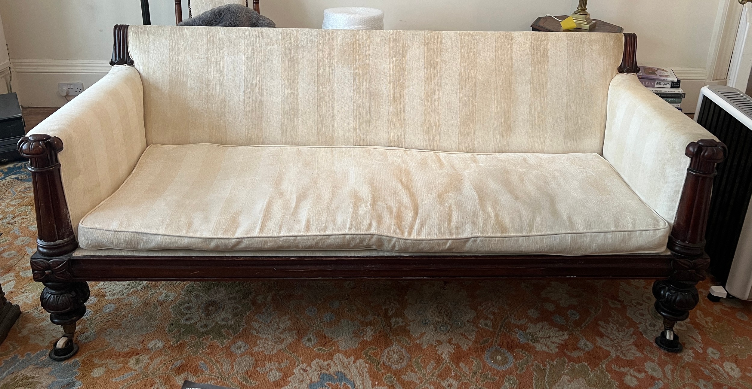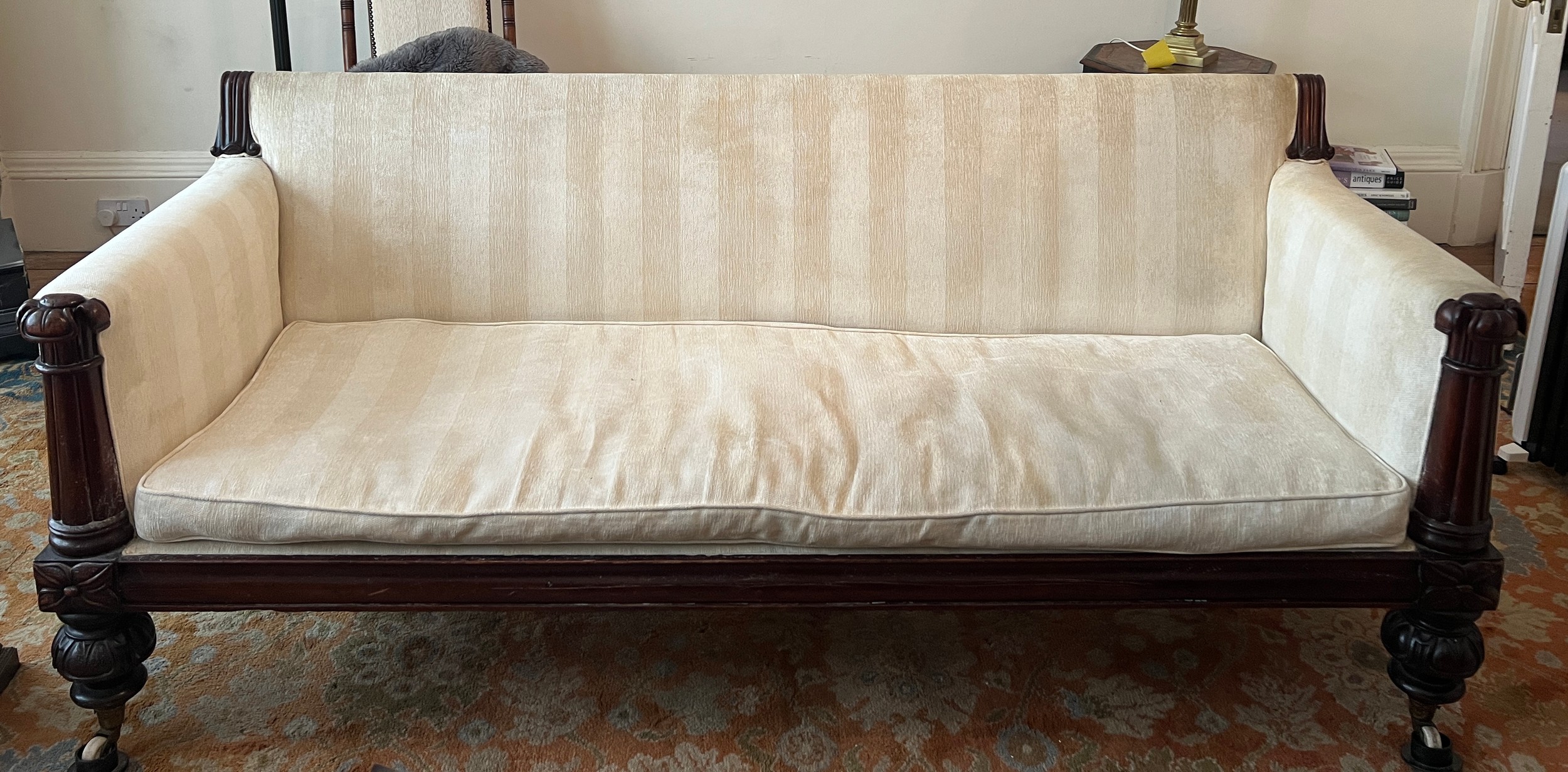 A Regency upholstered sofa. 206cm l x 79 d x 86 h.