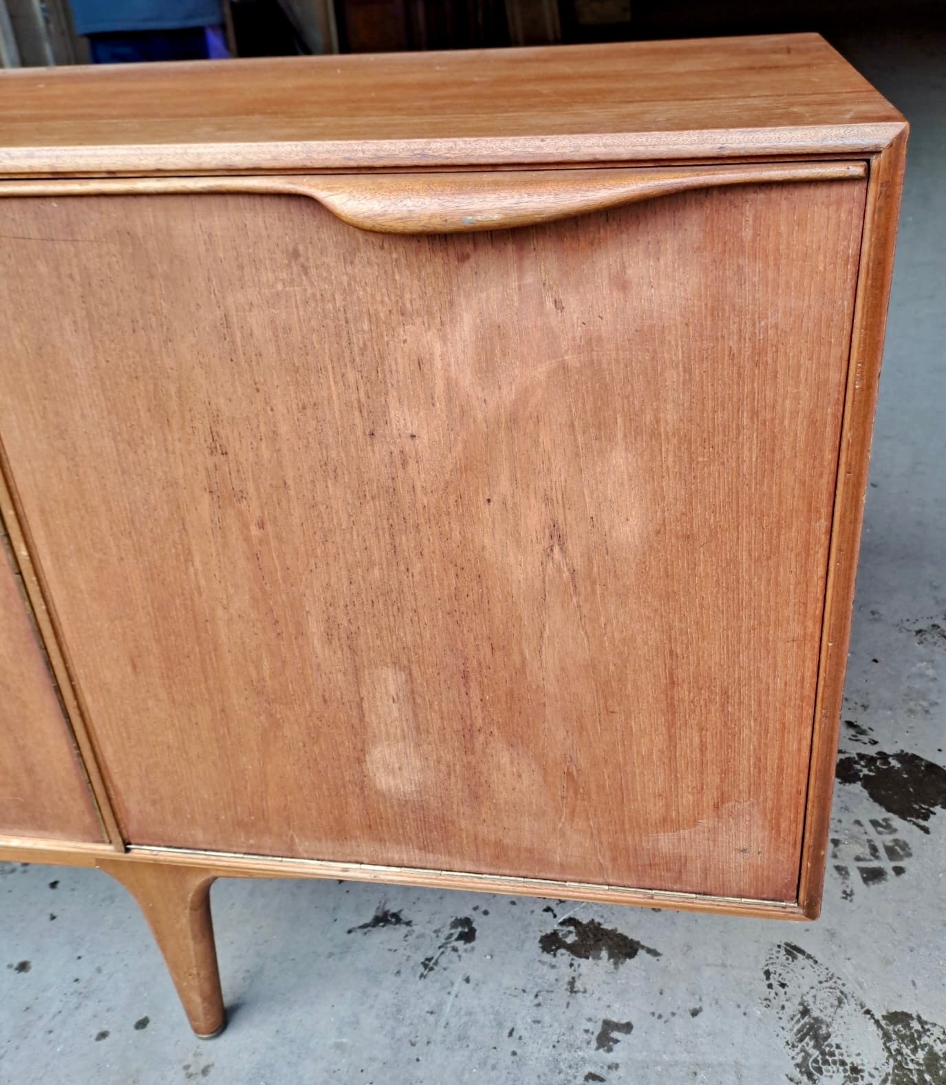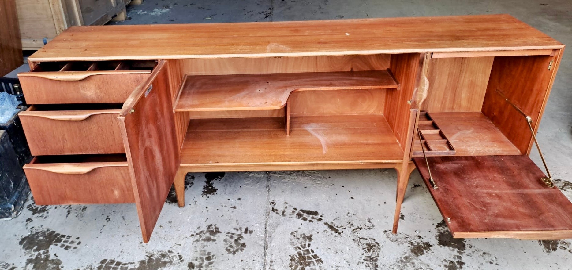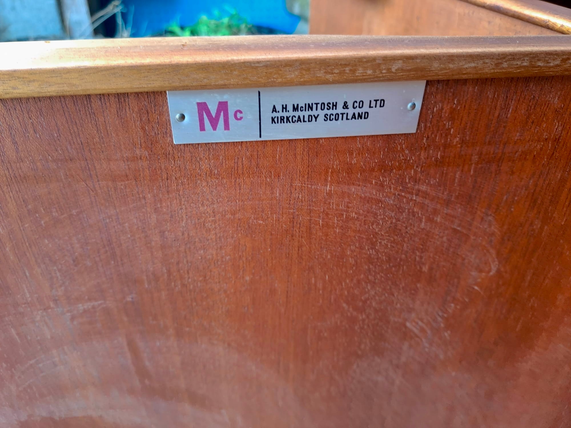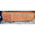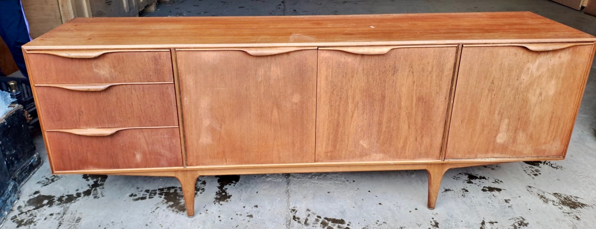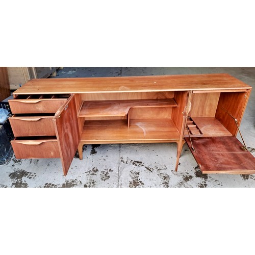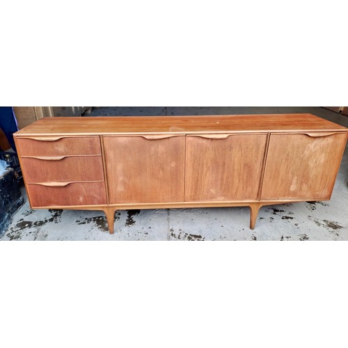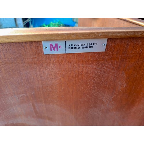 A mid 20thC McIntosh & Co. Ltd teak sideboard comprising three drawers and a double and single cupboard. 201cm w x 48cm d x 76cm h.