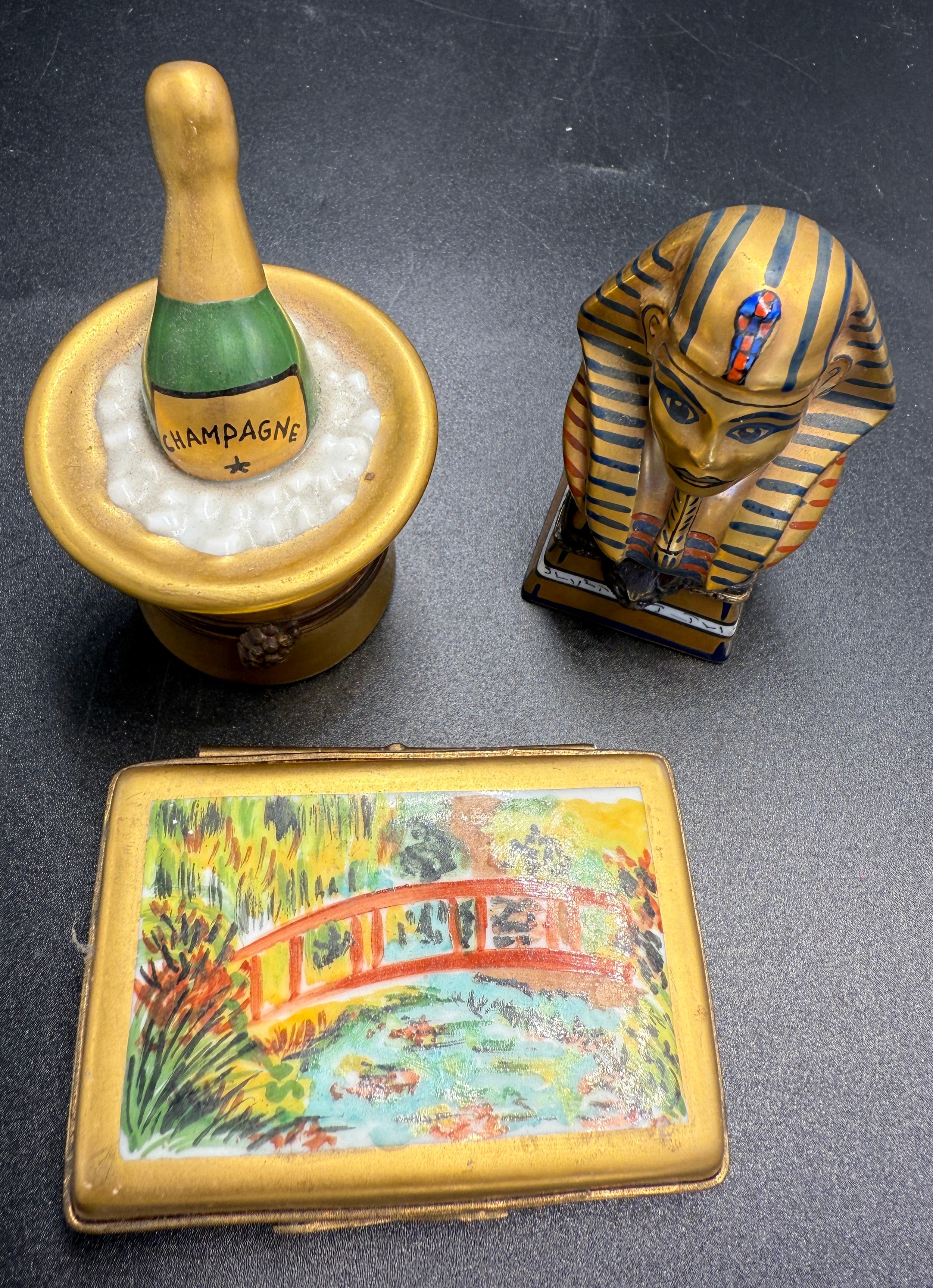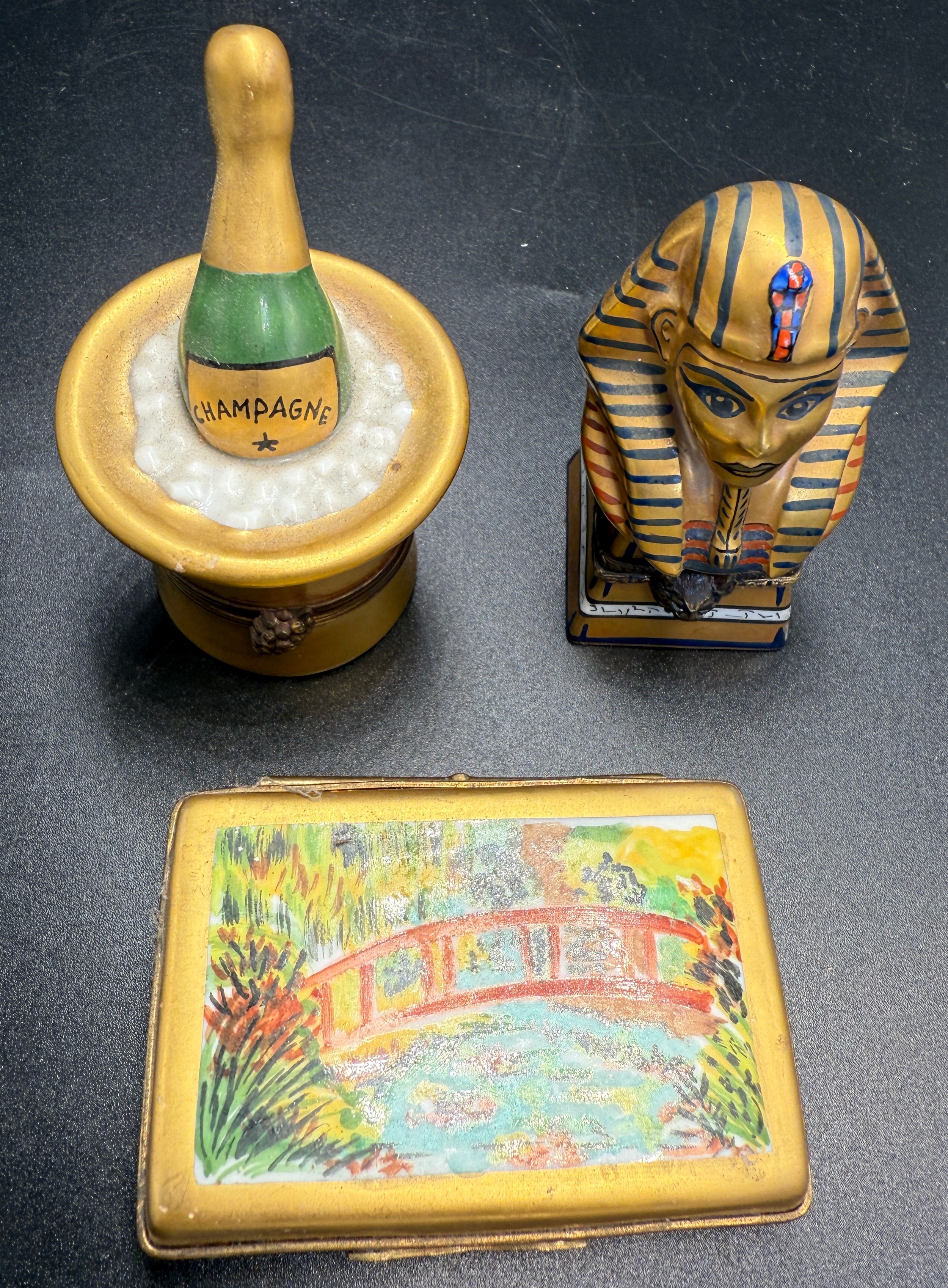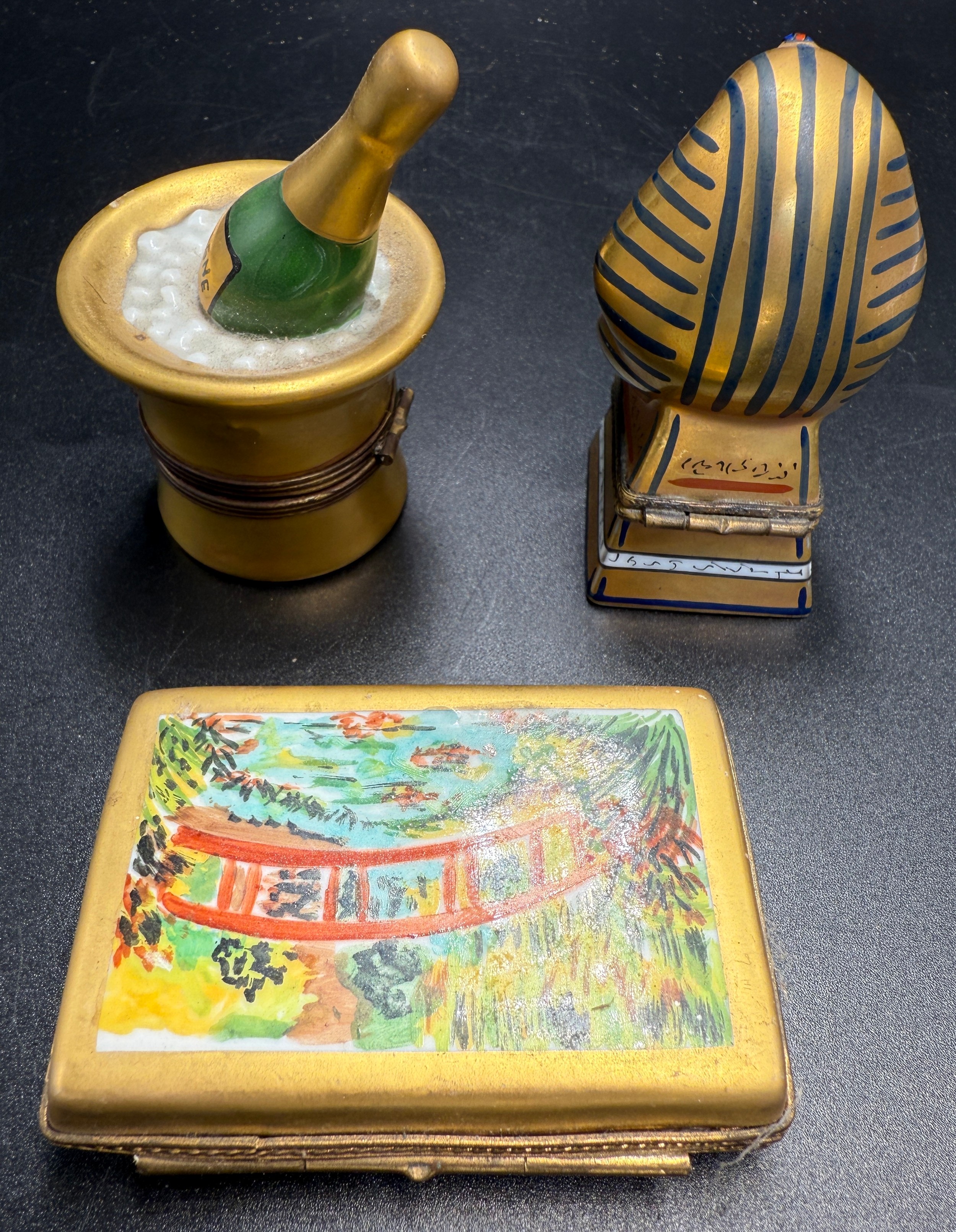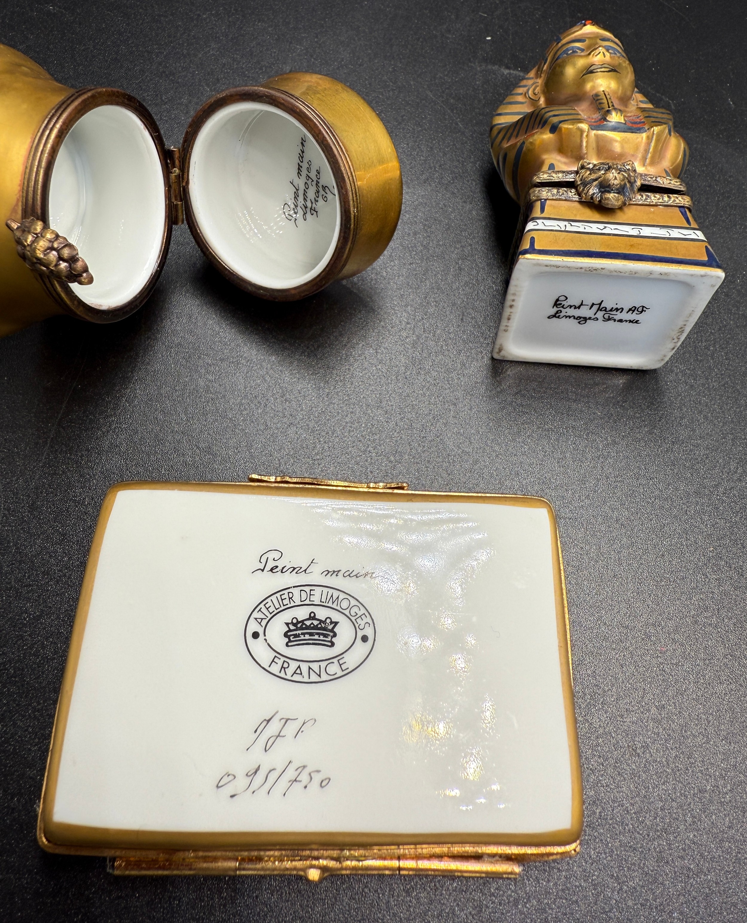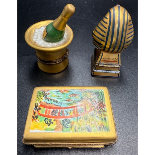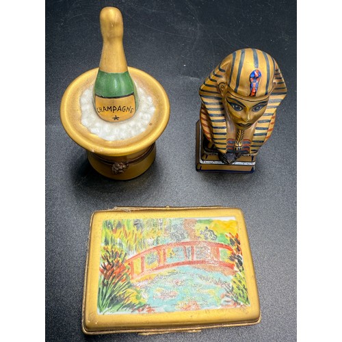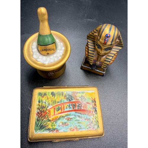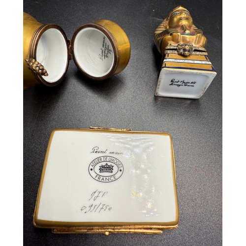 Three Limoges pill boxes.