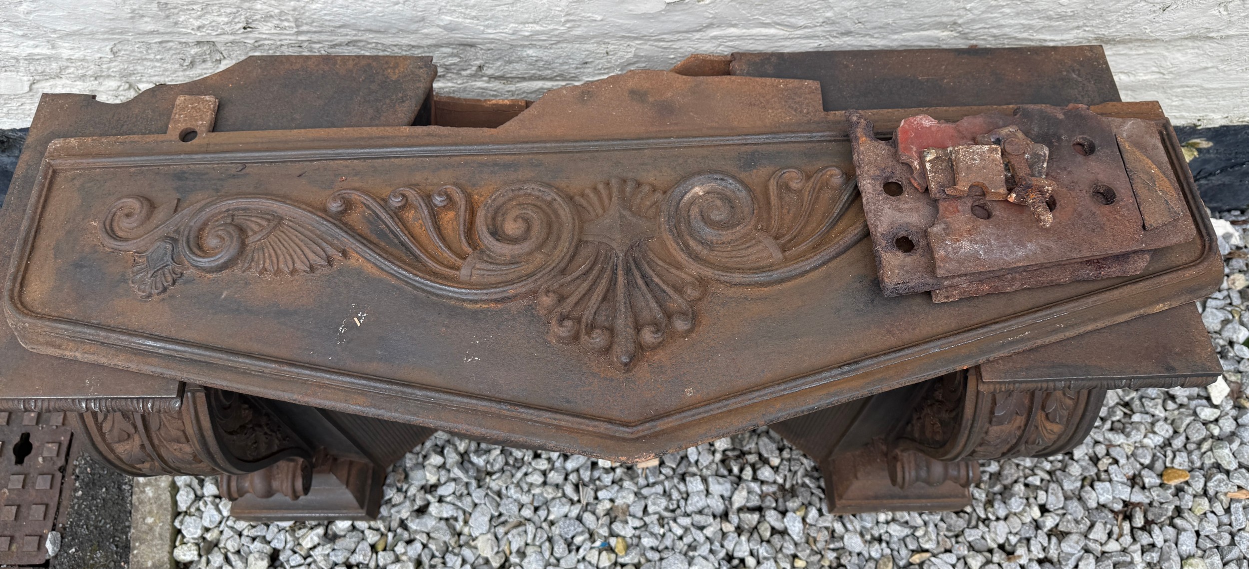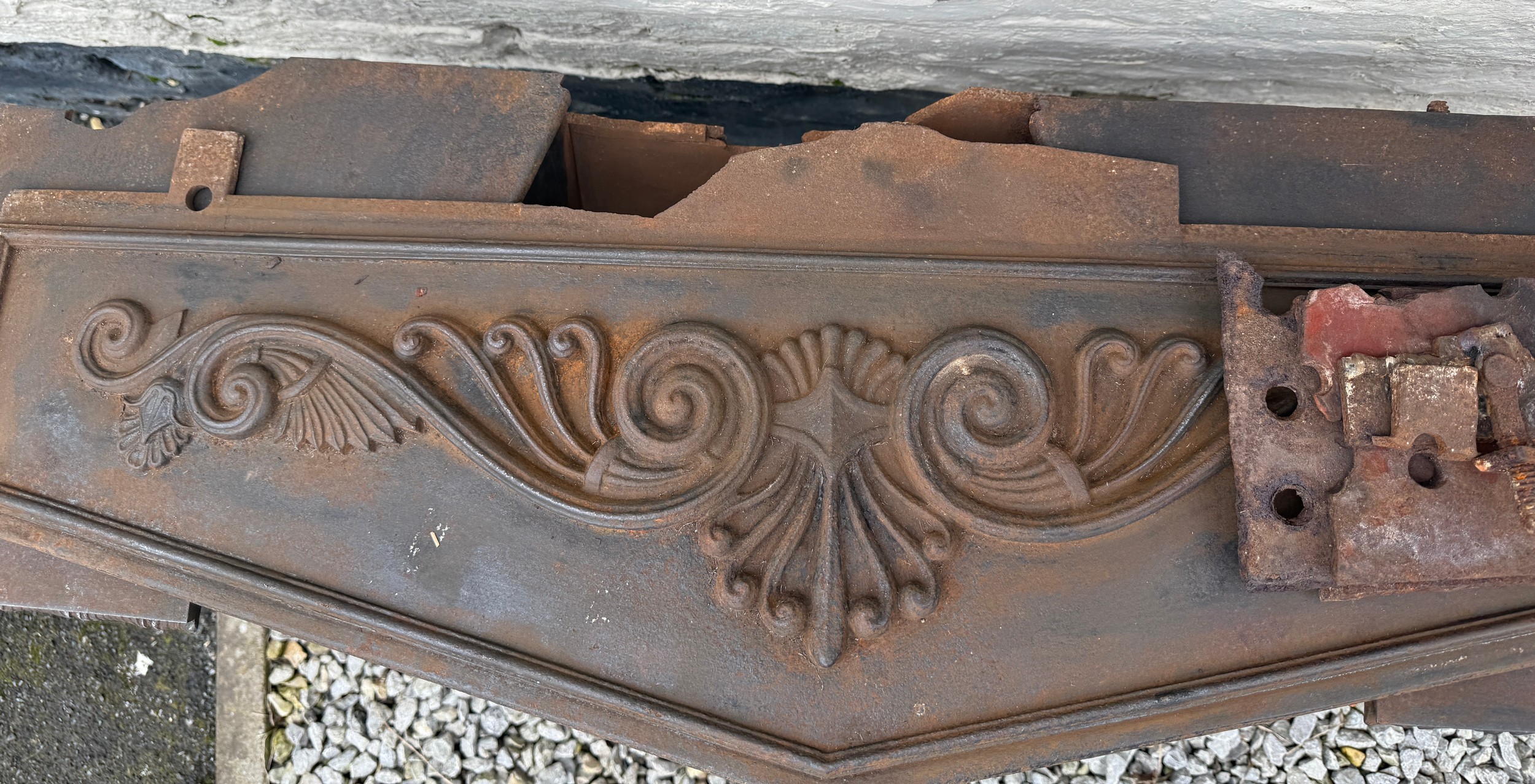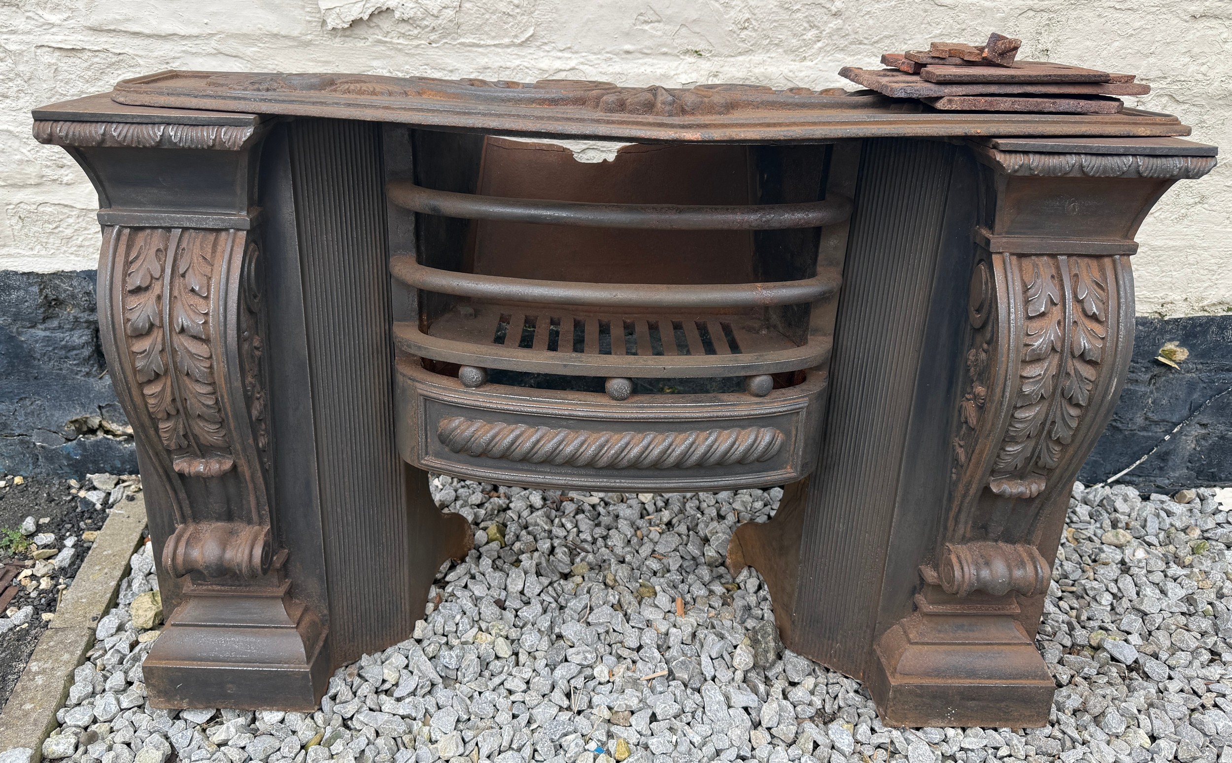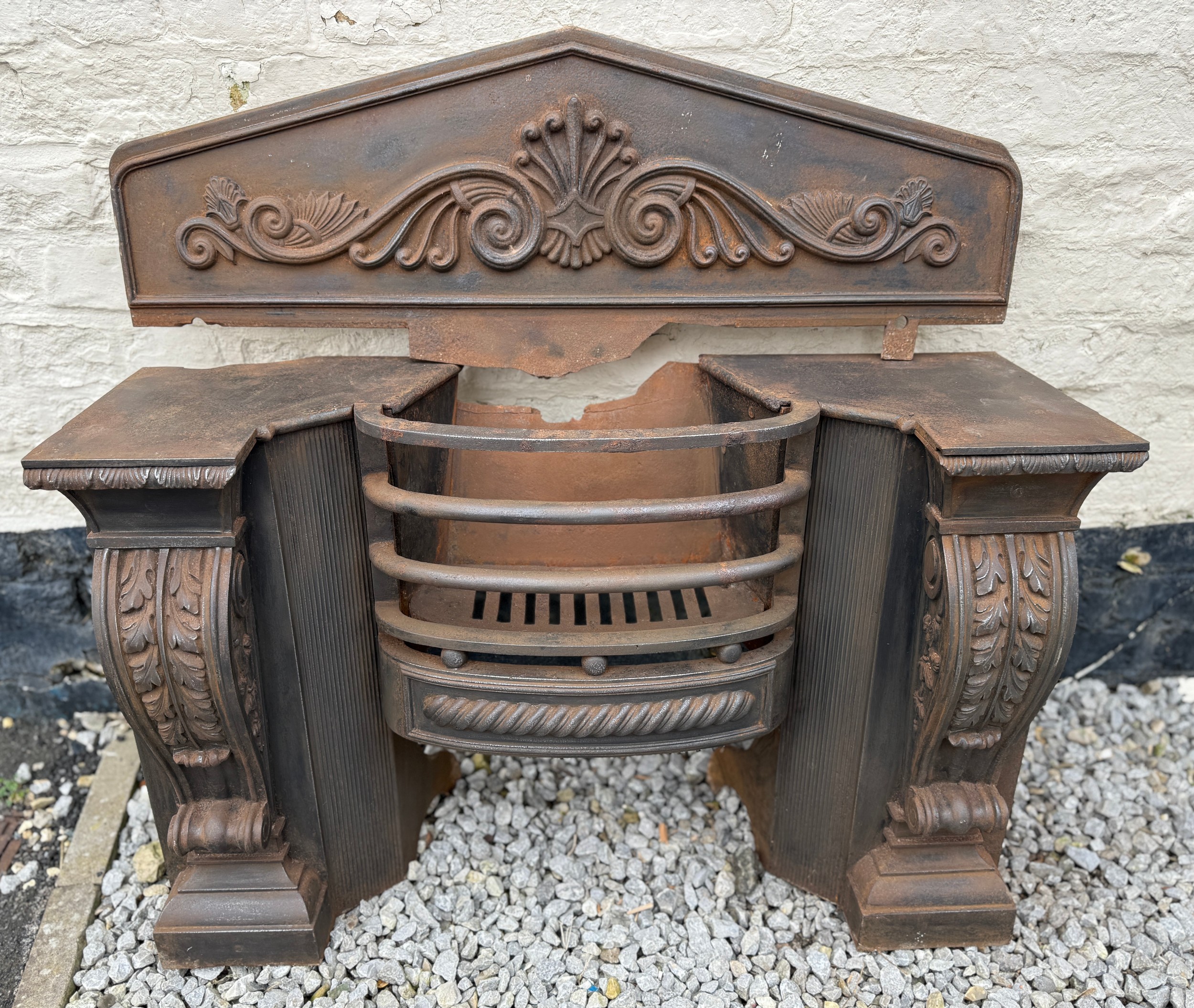 A Georgian cast iron fireplace. Measurements 55.5cm h x 86.5cm w 29cm d.