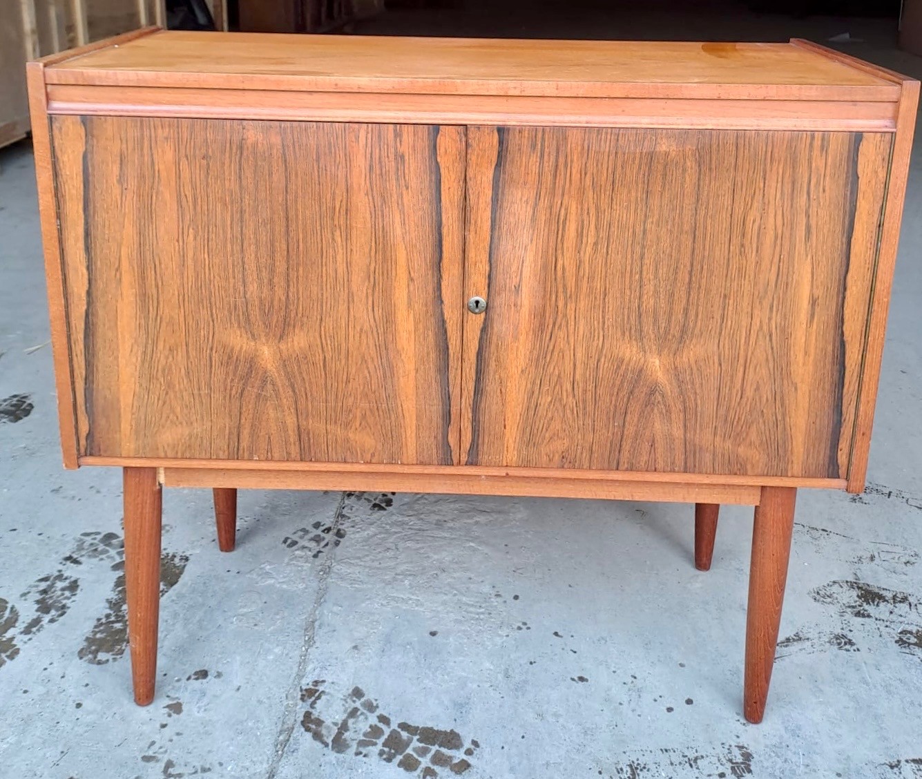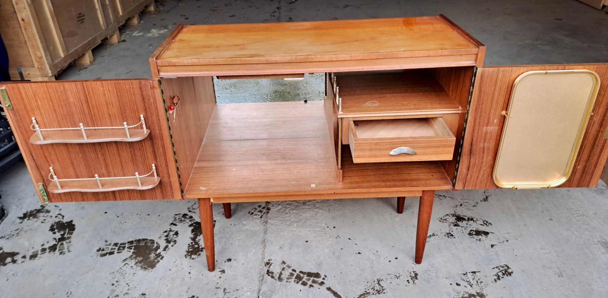 A mid 20thC drinks cabinet. 88cm h x 98cm w x 43cm d.