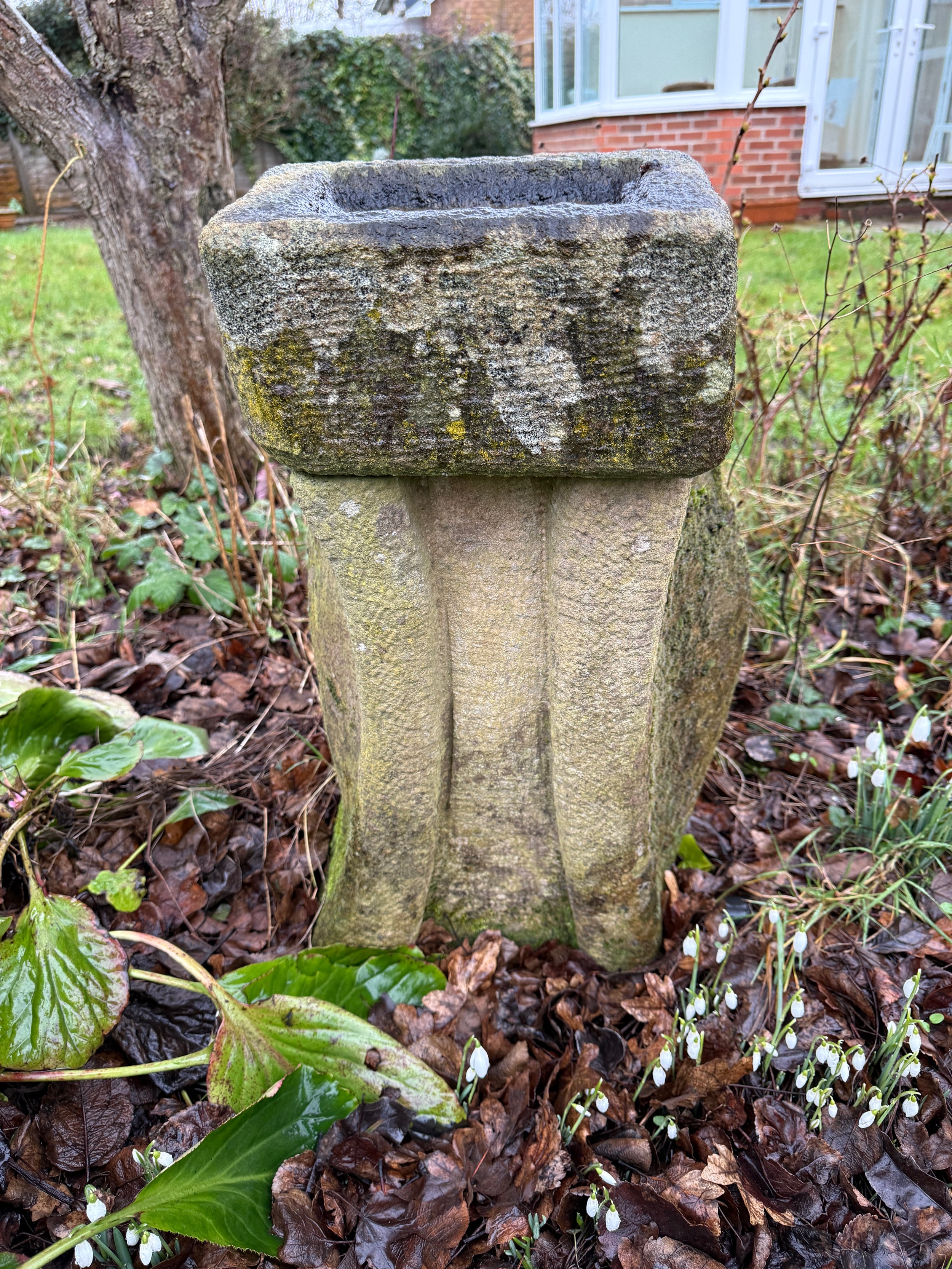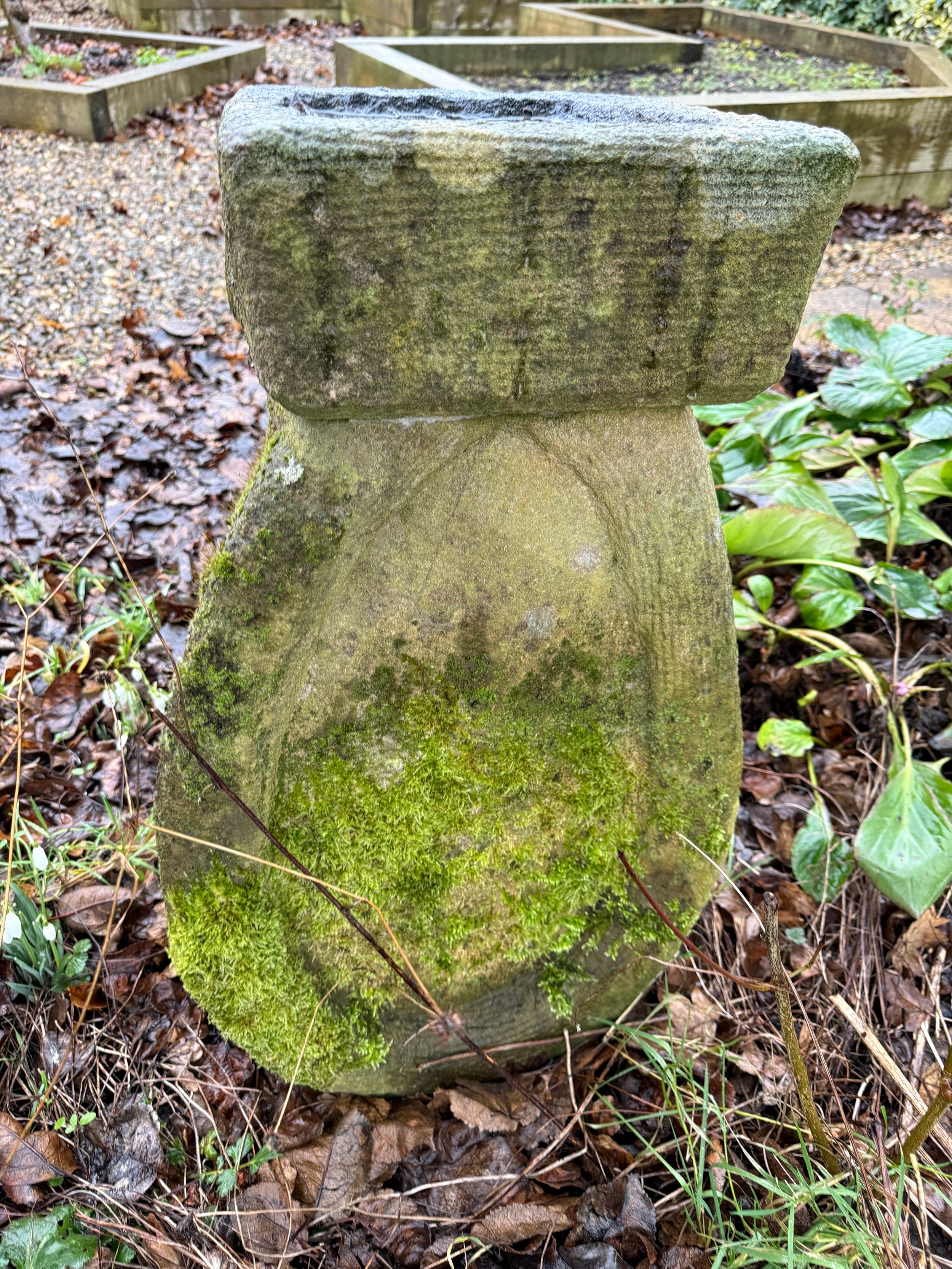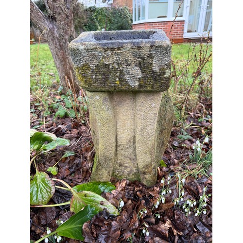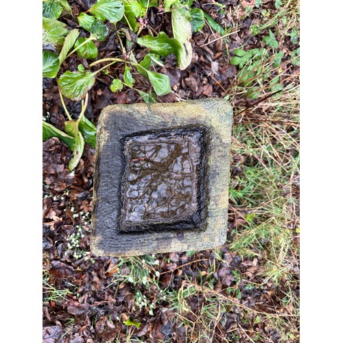 A stone birdbath of unusual form. 62 h x 39cm w.