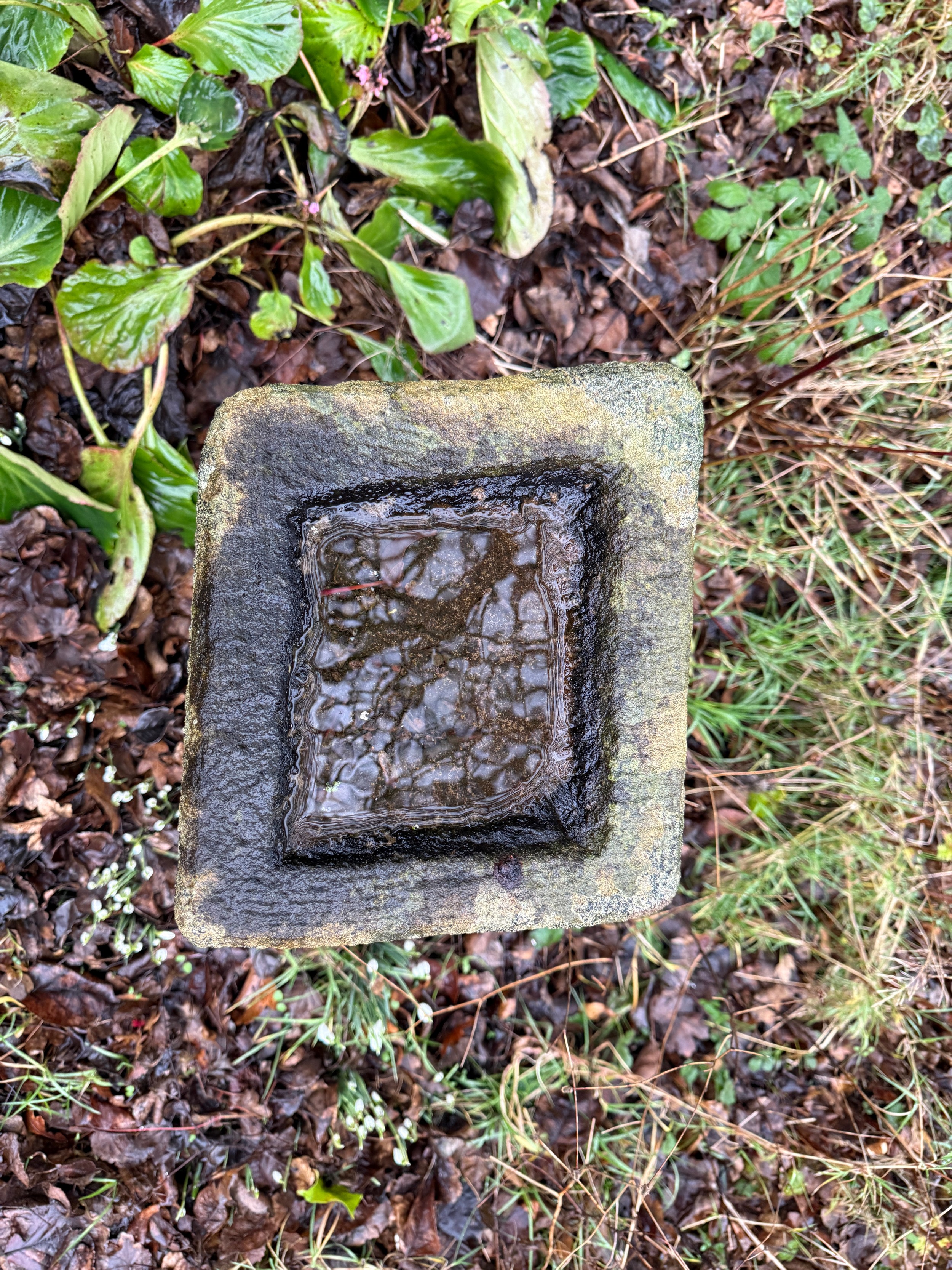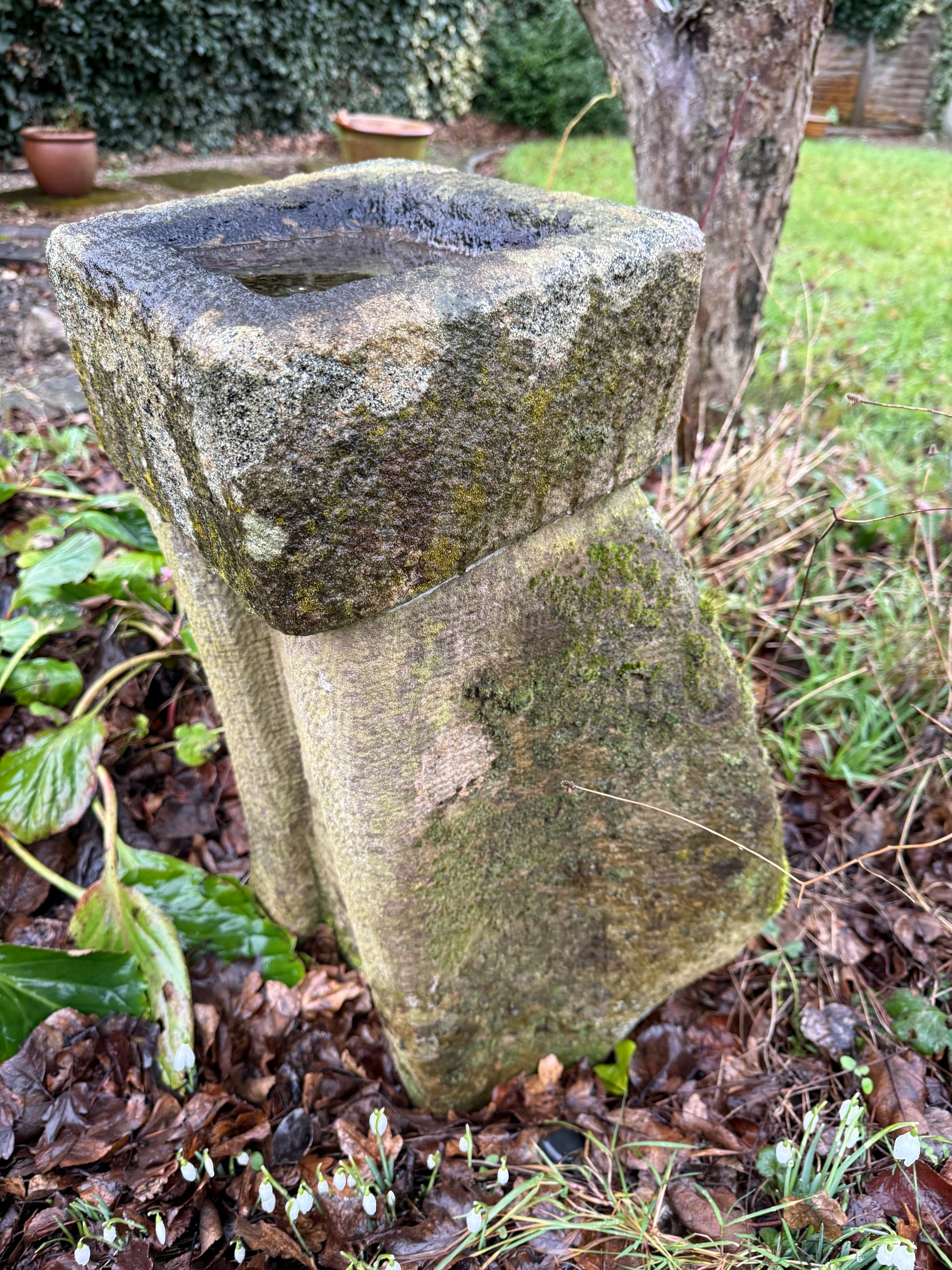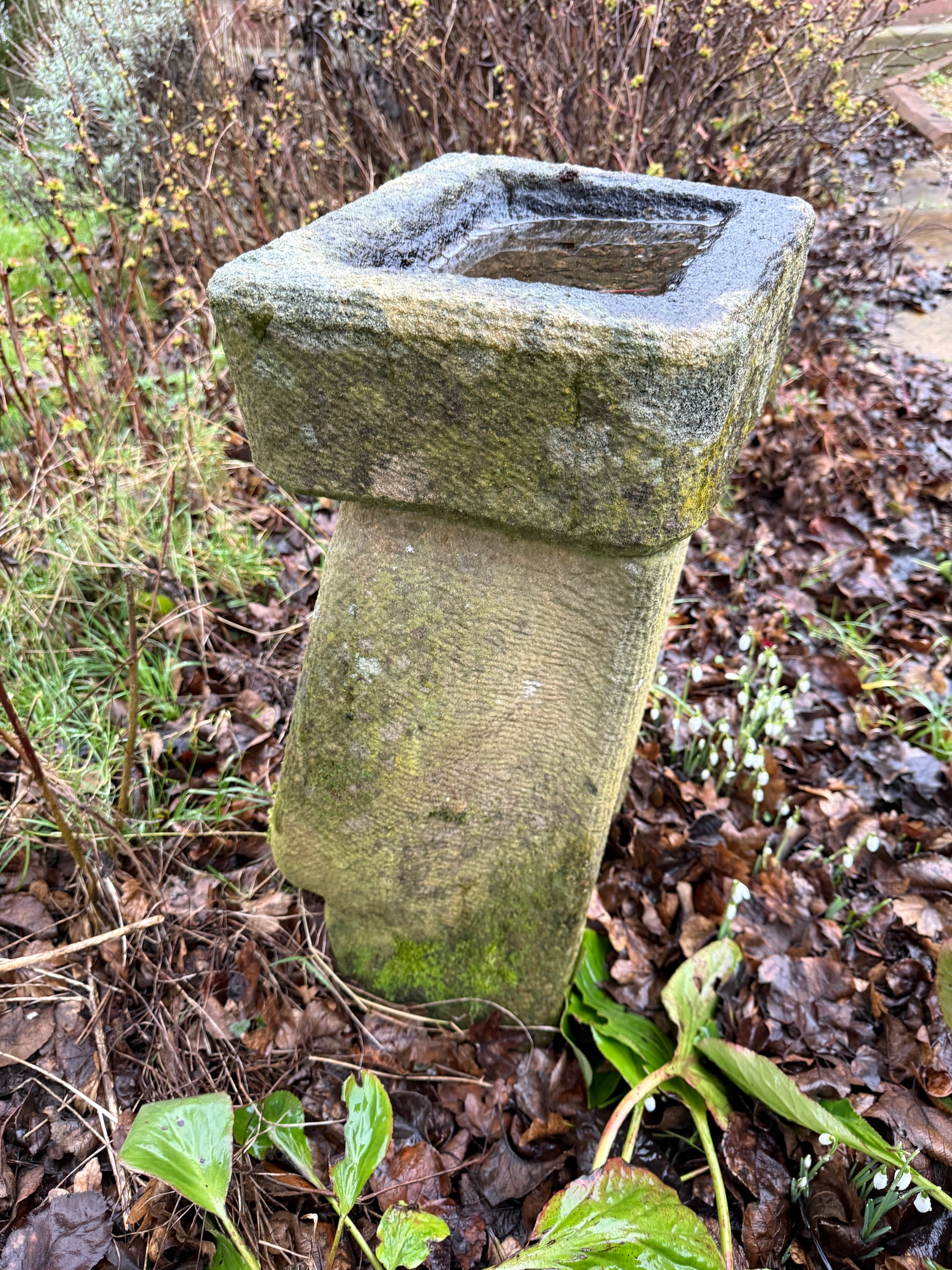 A stone birdbath of unusual form. 62 h x 39cm w.
