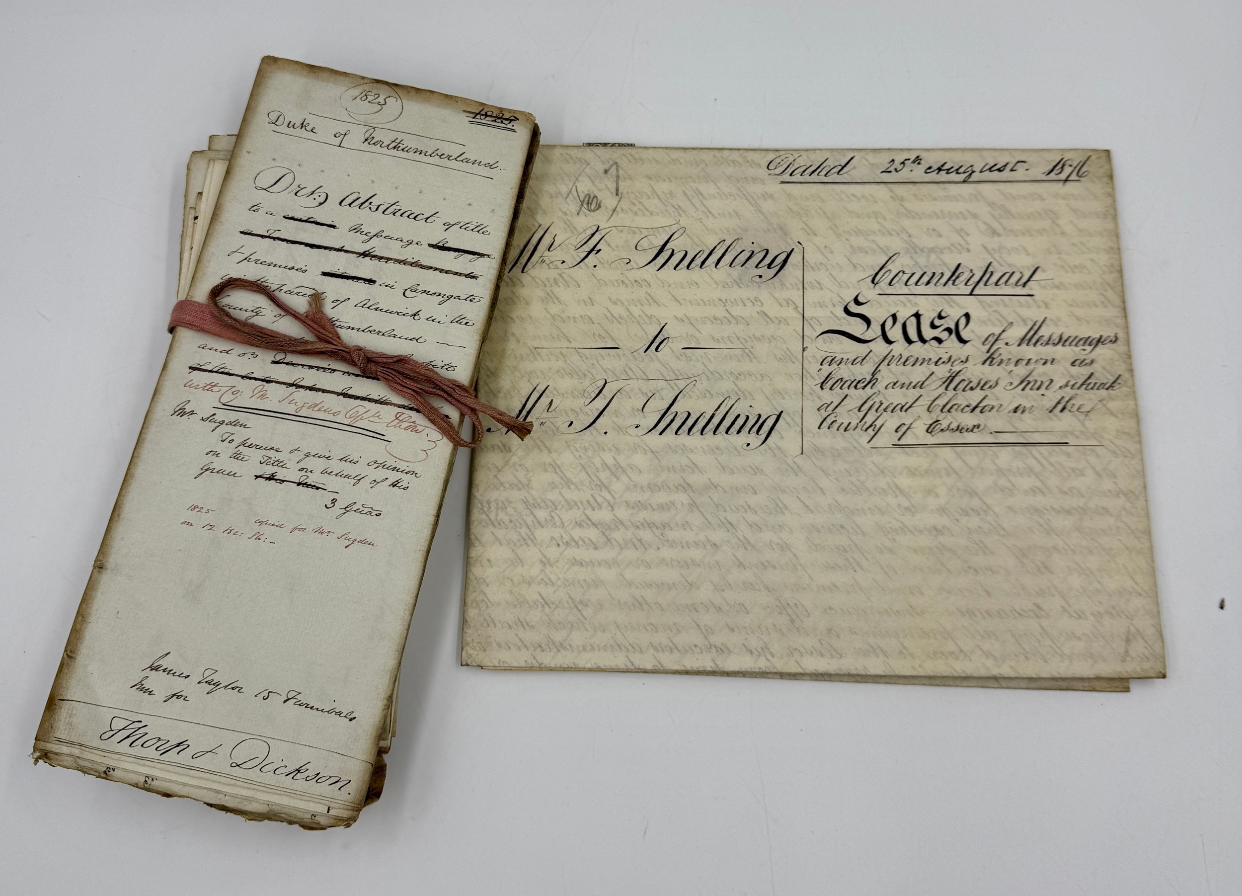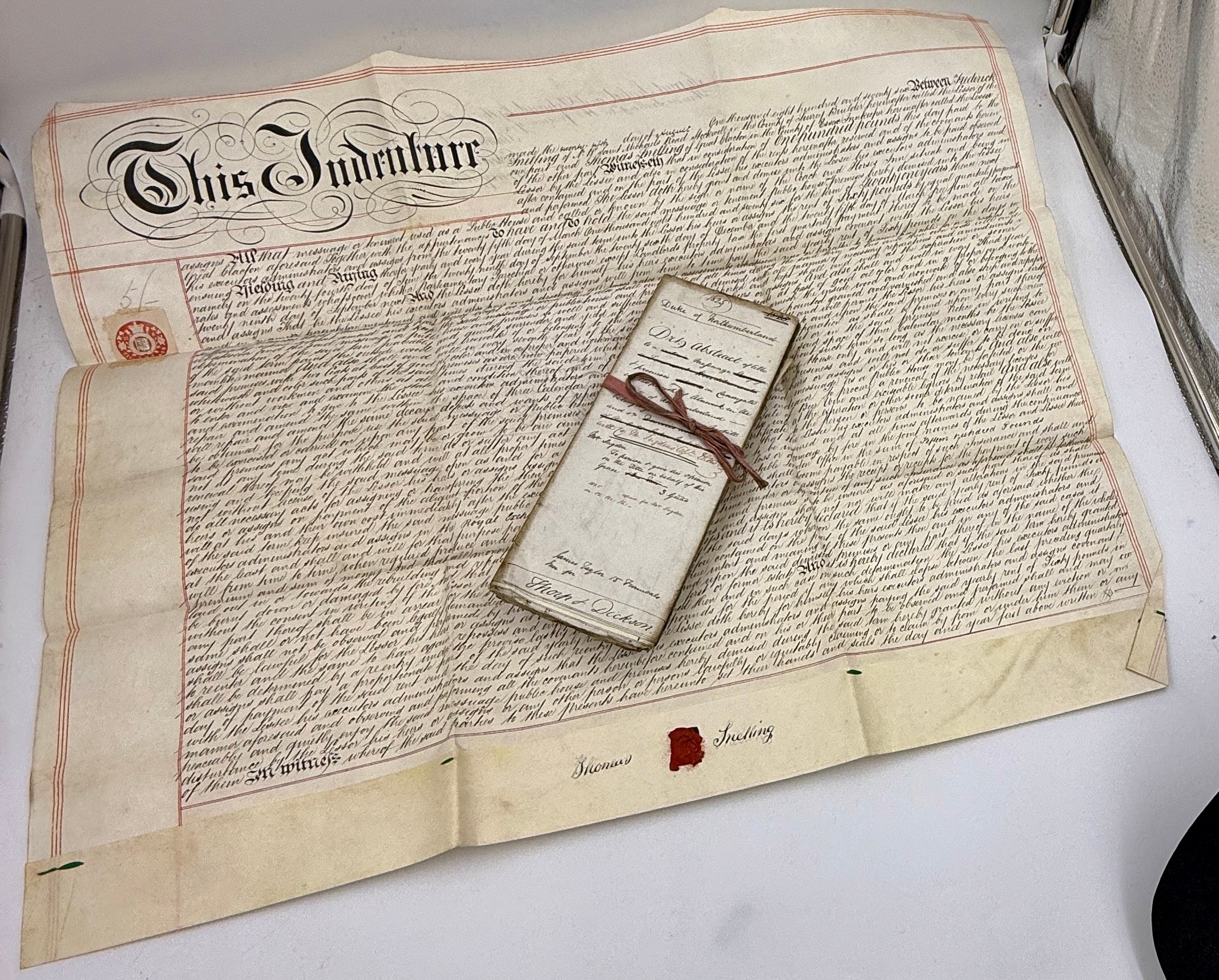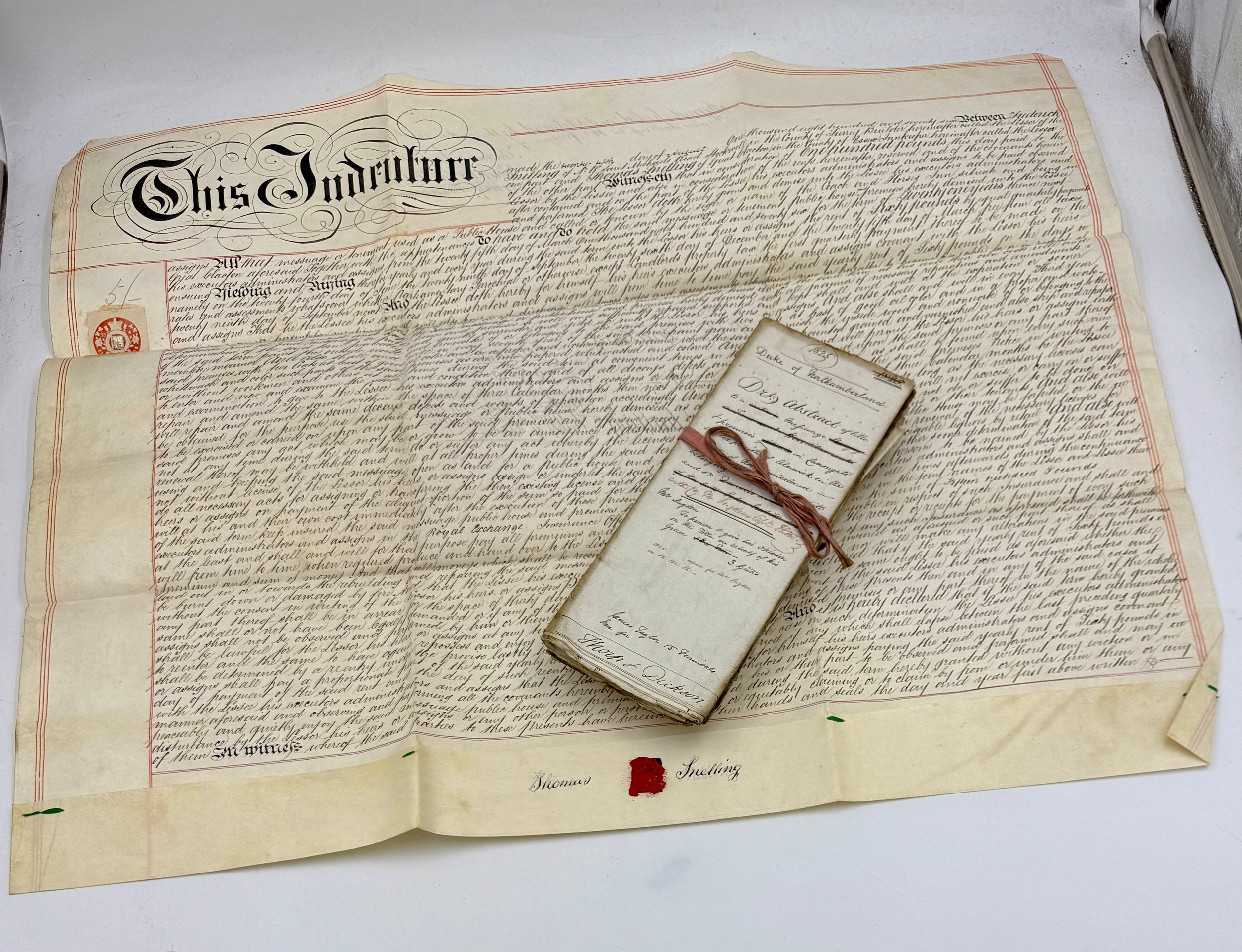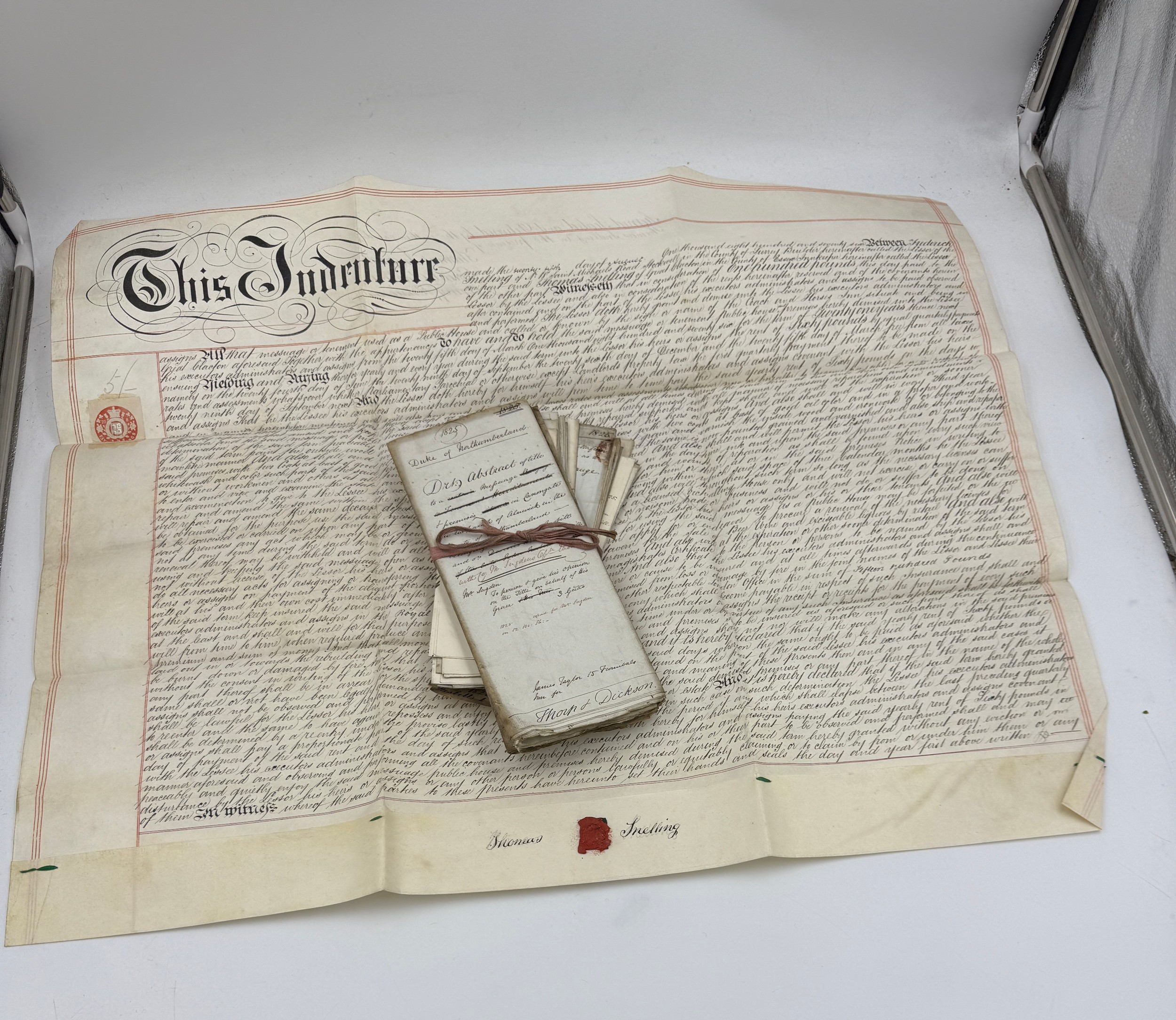 An 1876 sealed indenture together with various early 19thC deeds and accounts concerning Alnwick and the Duke of Northumberland.